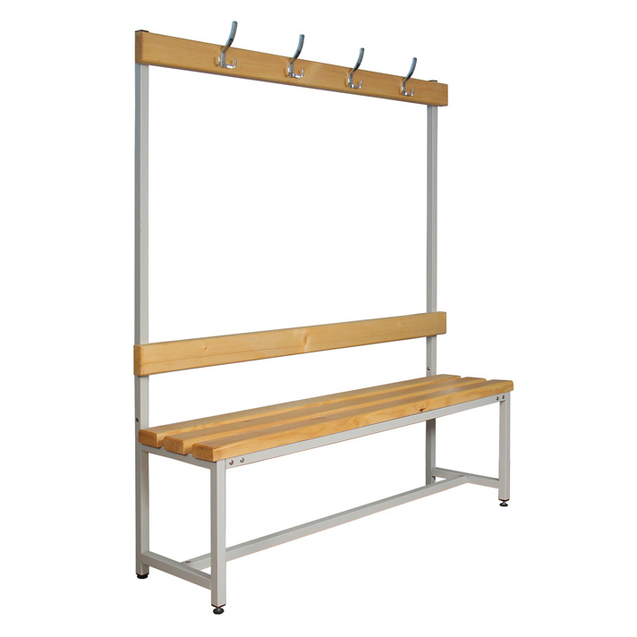- Очень прочные и долговечные скамейки для раздевалок со спинкой, вешалкой.