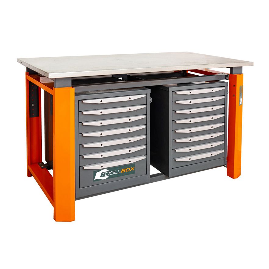 Верстак ТВР1500 (ТВ7-ТВ8) создан для тех, кому важно иметь не просто прочную рабочую поверхность, а полноценное и хорошо организованное место для ежедневной работы с инструментом, деталями и оснасткой. Это двухтумбовая комбинированная модель, в которой удобно сочетаются большая столешница, солидный запас по нагрузке и вместительная система хранения для мастерской, сервисной зоны или производственного участка.